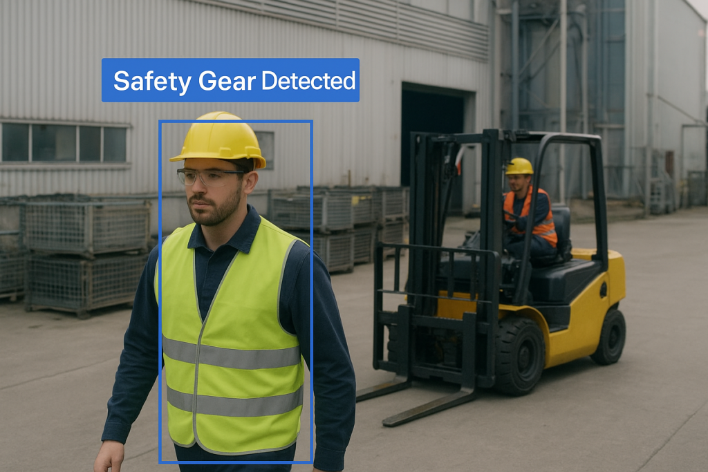 Kepatuhan Alat Pelindung Diri – Mengidentifikasi apakah pengemudi, operator, atau pejalan kaki mengenakan alat keselamatan yang diwajibkan (helm, rompi, dll.).